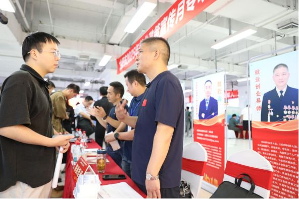 为进一步拓展退役军人和军属就业渠道,促进退役军人和军属更加充分更高质量就业,9月18日,合肥市2025年秋季退役军人及随军家属专场招聘会暨军创企业产品展示会在市人力资源市场成功举办。本次活动由市退役军人事务局、市人力资源社会保障局联合主办,市公共就业人才服务管理中心承办,通过“线下一站式服务+线上长效对接”模式,为退役军人及随军家属搭建就业创业精准服务平台。