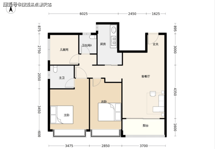 108㎡户型:3 室 2 厅 2 卫,独立玄关设计,约 3.7 米面宽阔景双厅,约 6.5 米阔景阳台,方正格局,动静分区,L 型厨房,主卧套间设计。